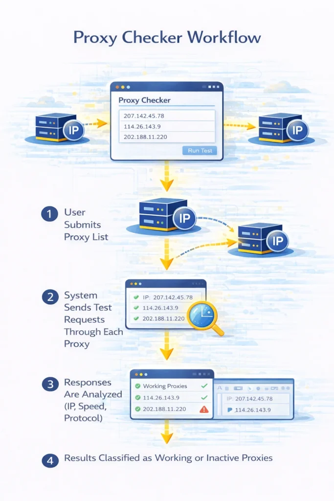 These checks help developers filter out broken or slow proxies before using them in automation workflows.
