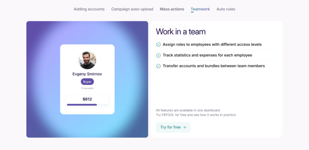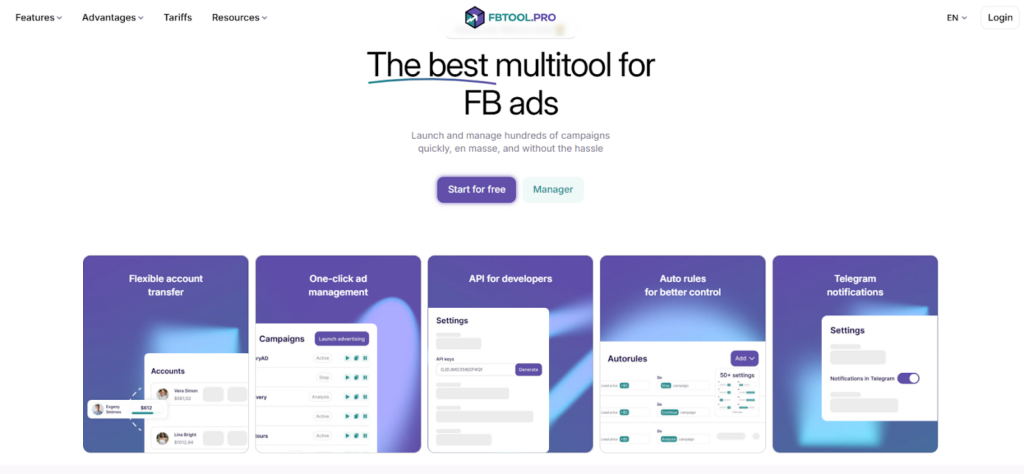At this stage, many specialists turn to automation. Not for speed alone, but to reduce manual work and lower operational load. FBTOOL is used specifically for these tasks – a service designed to systematize advertising workflows in Meta.