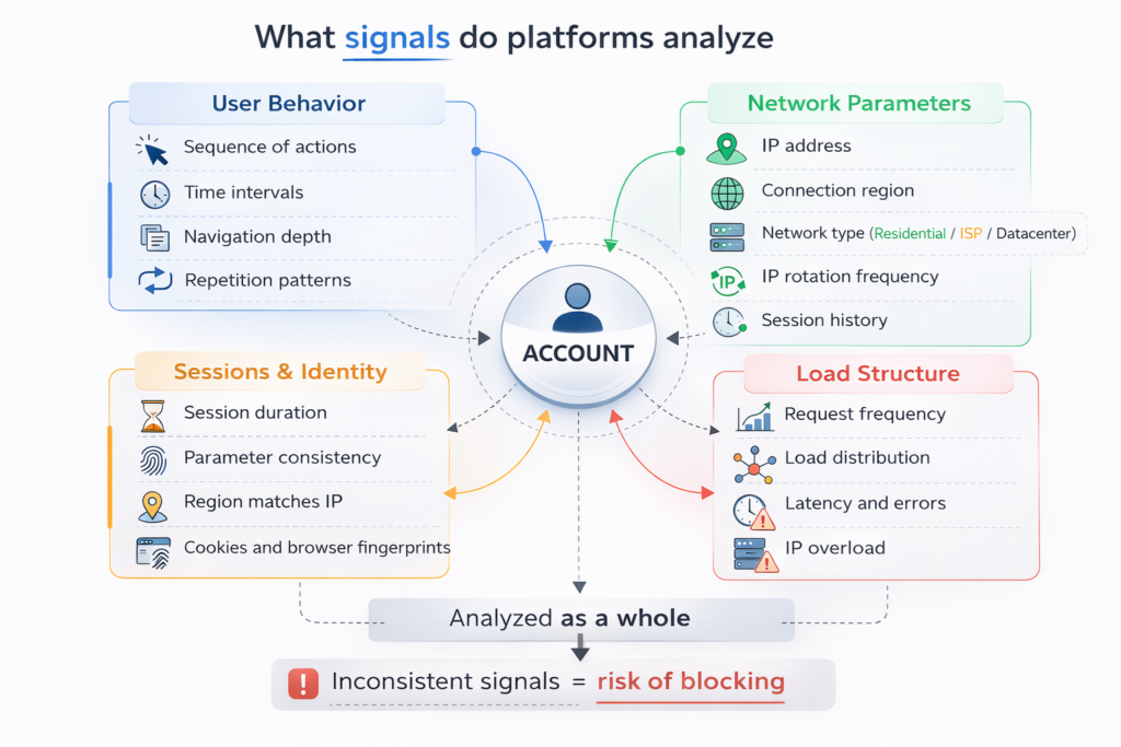 When everything is combined, it becomes clear that platforms evaluate not a single action, but the coherence of the entire environment.