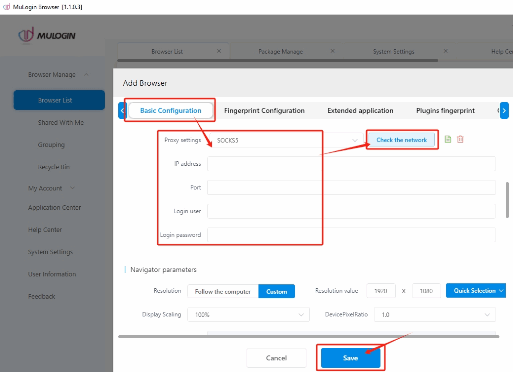 3. Configure proxies in MuLogin: