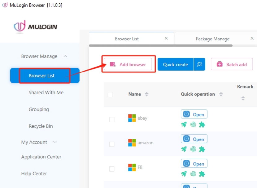 - Open the MuLogin client. Click “Add browser” to create a new browser profile.