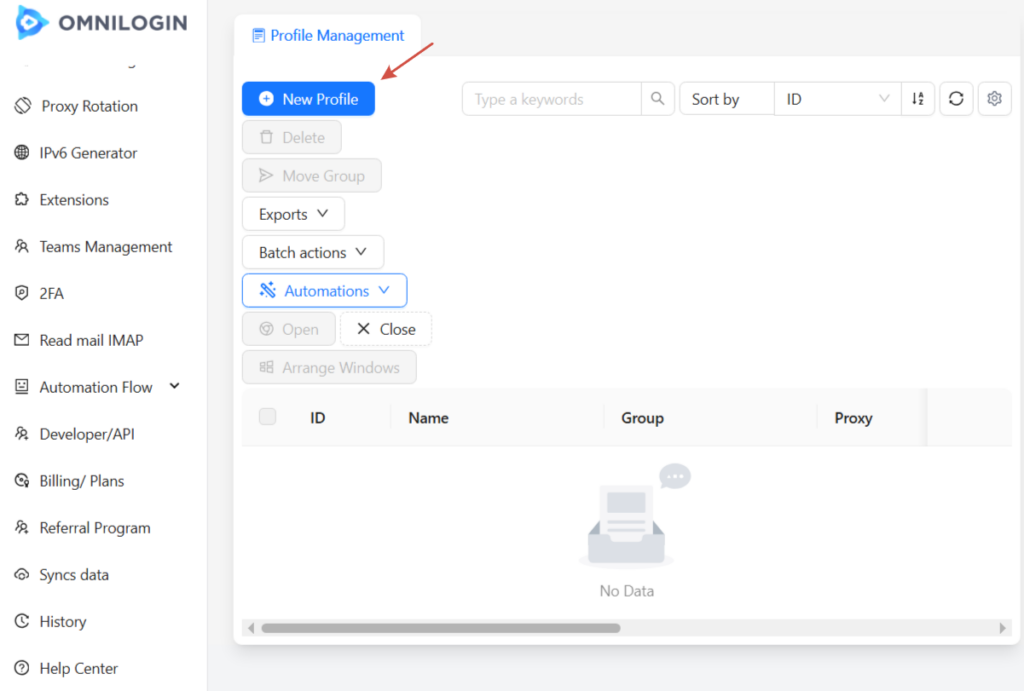 Inside Omnilogin, open the profile management section and create a new profile. Assign a clear, descriptive name especially important when working with multiple accounts or teams. This profile will become the permanent environment for a specific account or workflow.