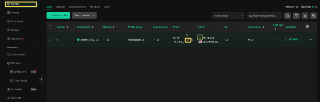 This helps you quickly verify which proxy is used for each profile.