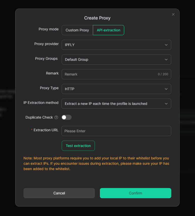 If you are using rotating proxies, you can connect them via an extraction URL provided by your proxy service.