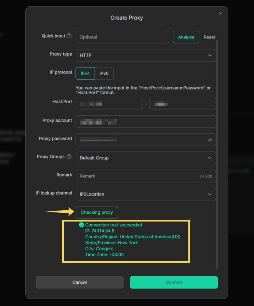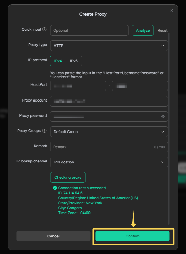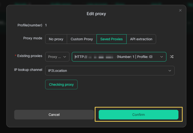 Click Confirm to save the proxy.