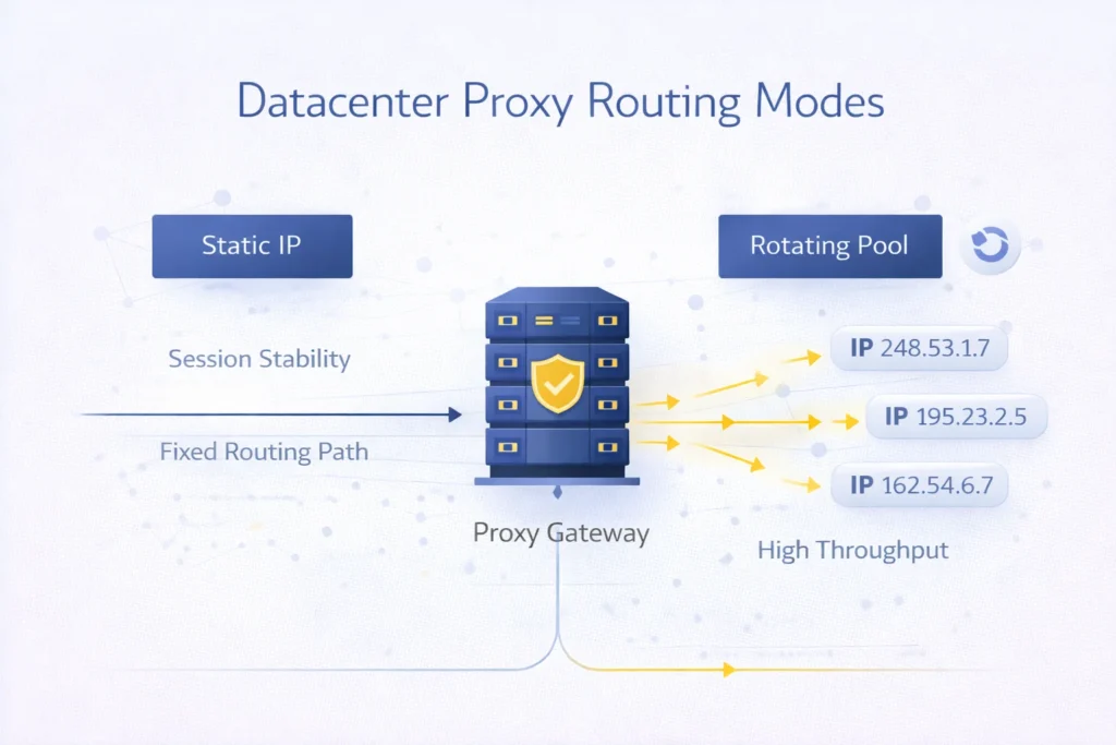 However, datacenter proxy environments are typically deployed in two primary modes: static and rotating. Understanding how these routing models differ helps teams design proxy strategies that balance execution speed, identity persistence and request distribution.