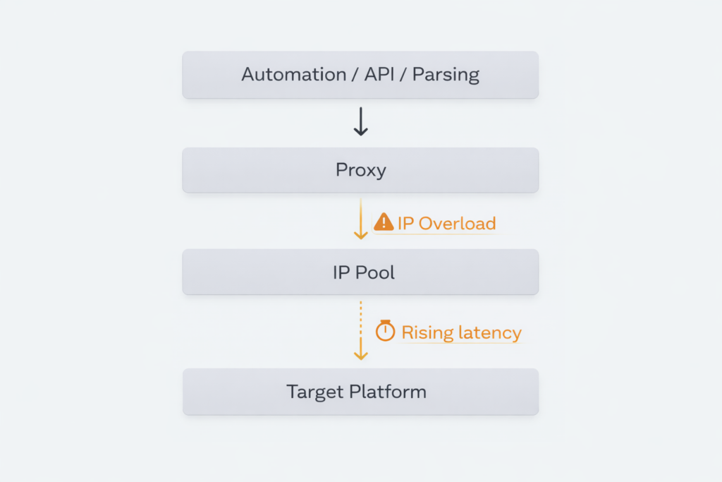 At some point, response time increases, delays appear, and proxy stability declines. Formally, nothing has changed: the proxy type is the same, the region is the same, the channel is the same. The only difference is the volume of load and the number of requests per IP.